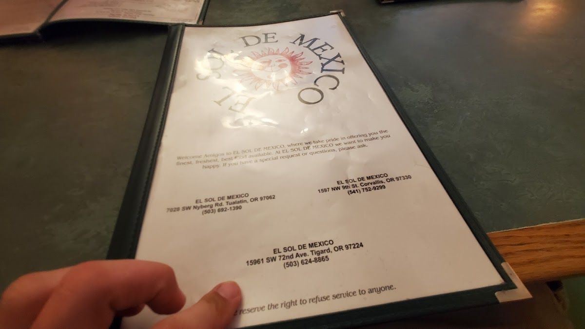 If you're in the mood for bold flavors and authentic Mexican cuisine, look no further than El Sol De México | Tigard Menu. Nestled in the heart of Tigard at 15961 SW 72nd Ave, this cozy spot serves up a delightful array of dishes that will transport your taste buds straight to Mexico. From sizzling fajitas to hearty burritos, there's something to satisfy every craving. Their menu features fresh ingredients and a wide selection of options, ensuring a perfect meal for any occasion. Whether you're enjoying a casual lunch with friends or celebrating with family, El Sol De México offers a warm, inviting atmosphere and the kind of food that makes you feel right at home.