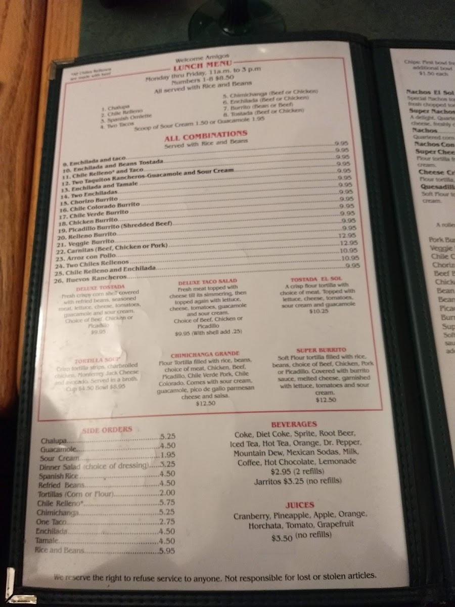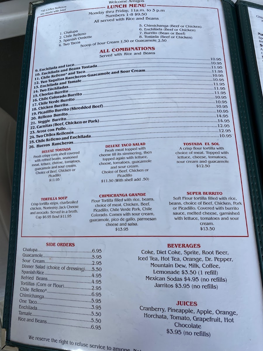 All combinations served with rice and beans.