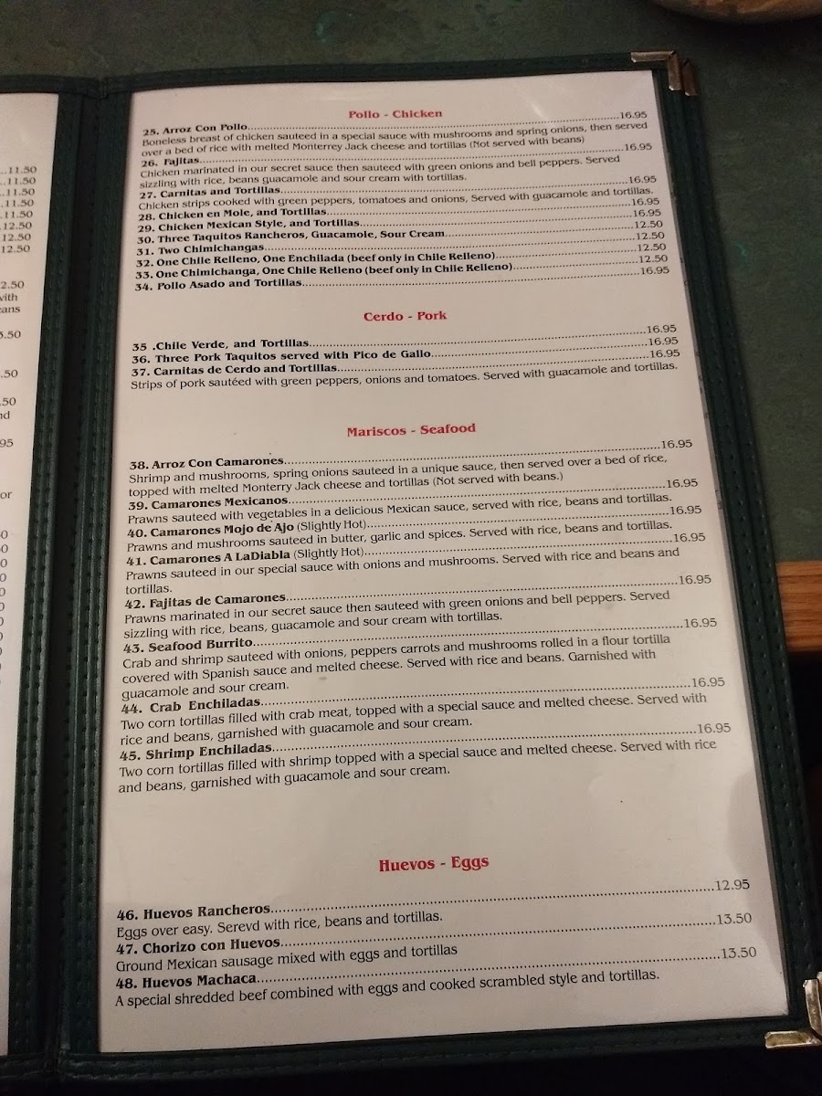 Boneless breast of chicken sautéed in a special sauce with mushrooms and spring onions, then served over a bed of rice with melted monterrey jack cheese and tortillas. Not served with beans.